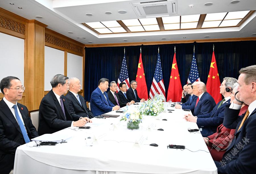 当地时间10月30日,国家主席习近平在釜山同美国总统特朗普举行会晤。新华社记者 申宏 摄